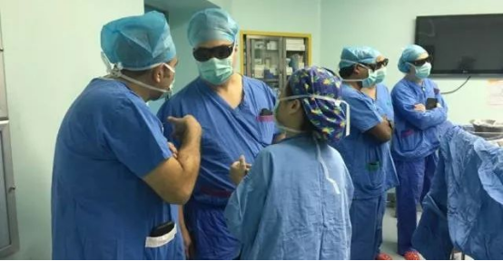 简单开幕式后,全体英国医生便迫不及待地进入手术室。他们分头行动,不放过任何细节。两位胸外科医师在我院医生的引导下,一口气观看了四台胸外科手术,掌握各种胸腔镜的手术方式,并亲自体验了一把裸眼3D显示设备的“神奇”效果。